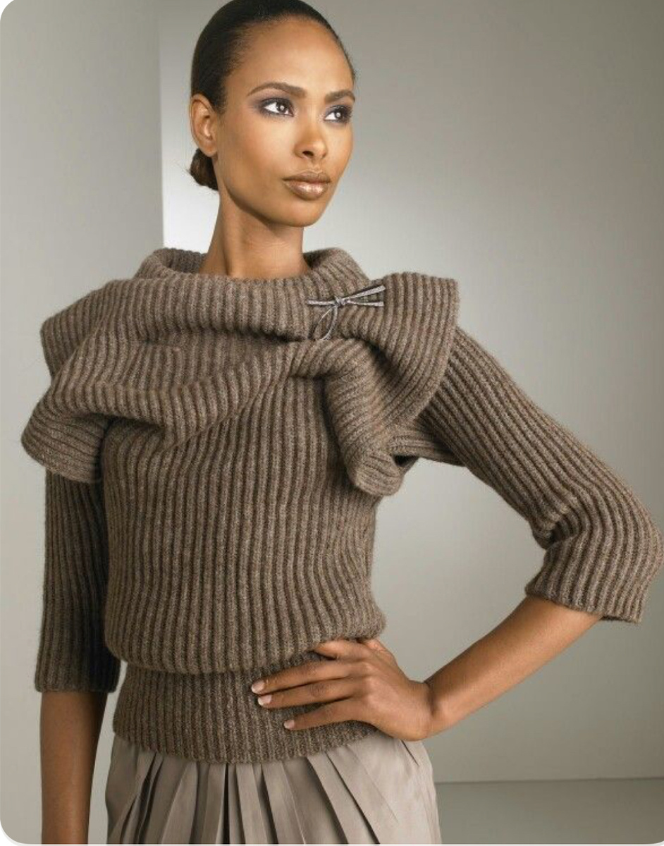 И опять хочу показать вам интересные и необычные детали, теперь уже в вязаных вещах. Как всегда , красота в деталях, иногда один небольшой штрих или нюанс и вещь заиграет по новому. Посмотрите какая интересная деталь в этом вязаном джемпере, сразу и не понятно как это связано. А здесь и вообще не сложно вязать 😃👍 Самый обычный свитер, просто огромного размера и чтобы его приталить нужно просто по бокам пришить пуговицу и петельку, и застегивать по желанию😃👍 Интересная же вещь! А вроде просто, но элегантно! Модель кардигана —кимоно! Интересная задумка, и сочетание разных техник вязания. А здесь та же модель, но в одном цвете. А это не очень простая модель, тут расчет нужен! А вот очень необычный жилет. И напоследок , что-нибудь поярче! Вяжем самую простую ленту, крючком, столбиками с накидом. По крайней мере , я так вижу по фото. И пришиваем в хаотичном порядке, или в любой другом порядке, короче, как нравится. Или вывязываем шнур спицами и раскладываем в отределенном порядк