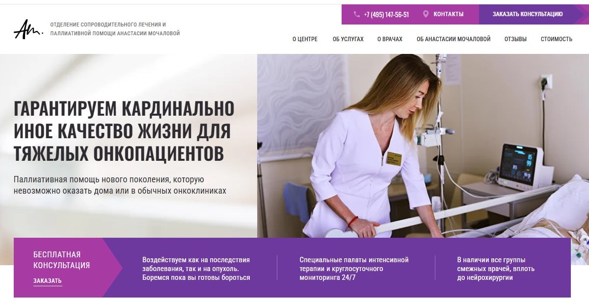 Запустили сайт центра паллиативной помощи. Кто не знает, - это помощь онкобольным, а точнее их близким по полноценному уходу за человеком. Особенность центра в том, что он буквально переворачивает все представление о паллиативке и выбивает стул из под конкурентов. Именно эту особенность центра мы вычислили и положили в основу маркетинговой концепции сайта при разработке позиционирования. По сути мы, а точнее центр, создал продукт, которого нет на рынке и с помощью маркетинга моментально обесценили все предложения конкурентов. И опять же исключительно потому. что основатели этого центра - просто ассы в своем деле. Врачи, которые думают о людях, а не о заработке Объясняю суть. Везде ПАЛЛИАТИВКА - это просто обезбаливание и уход. Мол сделаем так, чтобы умирать можно было небольно. Это сбрасывание проблемы с родных на некий центр. Однако, Анастасия Мочалова создала кардинально иной подход, - Паллиативная помощь - это не просто продление жизни, но и создание таких условий, которые позволя