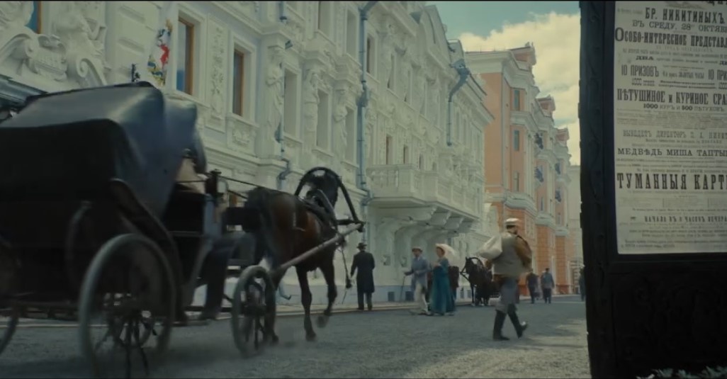 Титус прислал в управление телеграмму. Я честно сказать, не понял, откуда он ее слал, он разве не в Нижнем? Благово решает отыгрывать роль полковника, князя Порюса-Визапурского (у самого Николая Свечина есть немного об этом княжеском роде). Из афиши на тумбе мы можем узнать, что сейчас в Нижнем царит глубокая осень, на носу среда 28 октября, хотя в первой серии (то есть буквально несколько дней назад), когда Лыков баню ломал, березы утопали в своей буйной зелени. И да, такой мелкий штрих - 28 октября по старому стилю, это 15 октября и этот день в 1895 году был вторником. Так что на дворе в сериале какой угодно год, но только не 1895-ый.