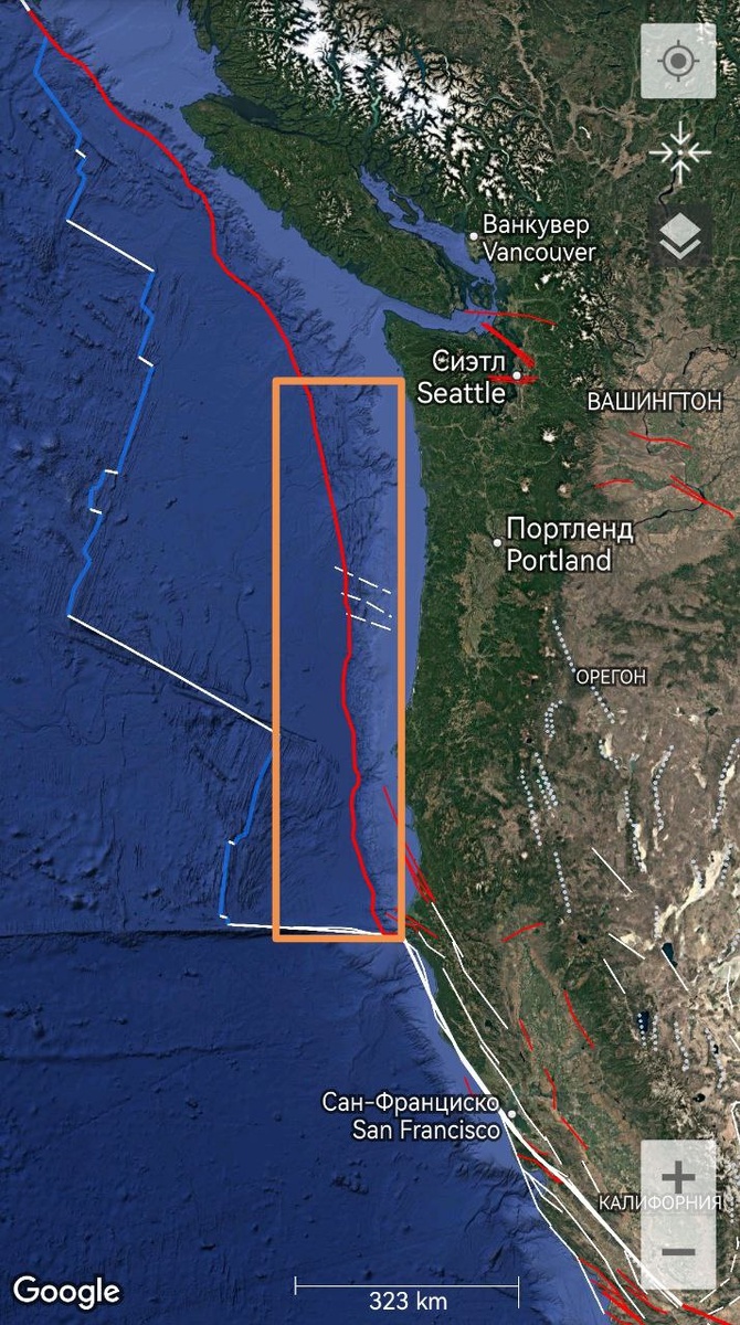 До 20 мая возможно ощутимое землетрясение у восточной границы плиты Хуана де Фука (до М6+) ==== A significant earthquake is possible by May 20 at the eastern boundary of the Juan de Fuca plate (up to M6+)