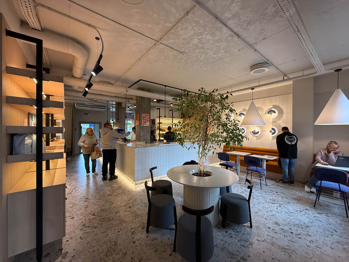 Да-да, та самая пекарня с Дзержиского, 119 наконец-то раздуплилась на второе заведение. Помещение выбрали козырное - первый этаж одного из самых желанных ЖК в центре, по соседству с новой «Мройва» в доме «Парк Челюскинцев» давным-давно работает домашняя кулинария «Амамам» от шеф-повара Ворошилова, в которой можно зацепить хумус, тартар, сырники, блинчики и остальные полуфабрикаты. Типа ресторанные изыски, проверим на себе. Легко нашли место на здоровенной парковке перед домом, дальше было дело техники найти вывеску, которую буквально нарисовали на коленке. Зайти в пекарню можно с двух сторон, сзади и спереди. Два просторных зала, круглый стол у дерева, гостиный зал с креслами и випка за шторкой. С учётом бюджетного ремонта получилось уютно, дело в аромате свежесваренного кофе, картинах и домашней мебели. Варят кофе, замешивают авторские замесы на кофе, сегодня остатки выпечки с полки, самодельные десерты, хлеба и вкуснейшие круассаны. 1. Фильтр по-чёрному за 7р - гуд, кофе с кокой за 1