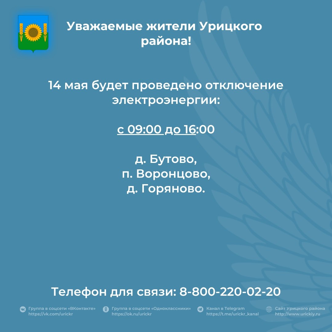 📢 14 мая будет проведено плановое отключение электроэнергии. Все подробности в карточке ⬇