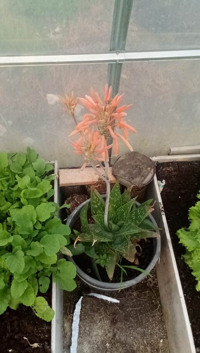 После того, как кончики листьев прихватило заморозком, он зацвёл !