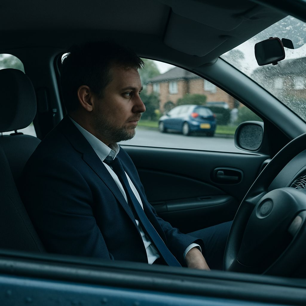 Иногда листает телефон, иногда — просто смотрит в лобовое стекло.