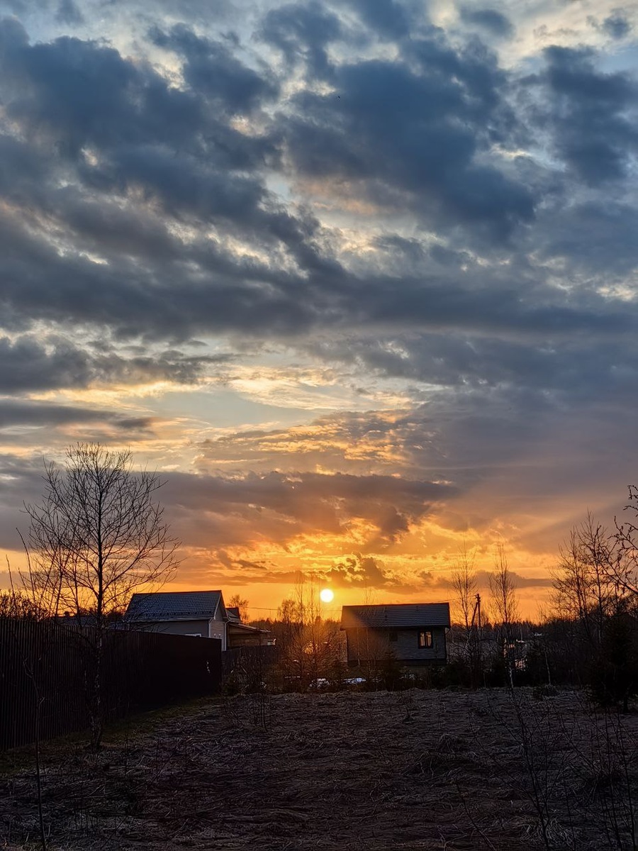 Ярко-желтый закат за облаками (Комарово, Клинский район) #sky #blue #sunset #sun #bright #yellow #white #grey #clouds #rural #landscape #spring #May #Komarovo #Klin #небо #голубое #закат #солнце #яркое #желтое #белые #серые #облака #сельский #пейзаж #весна #май #Комарово #Клин
