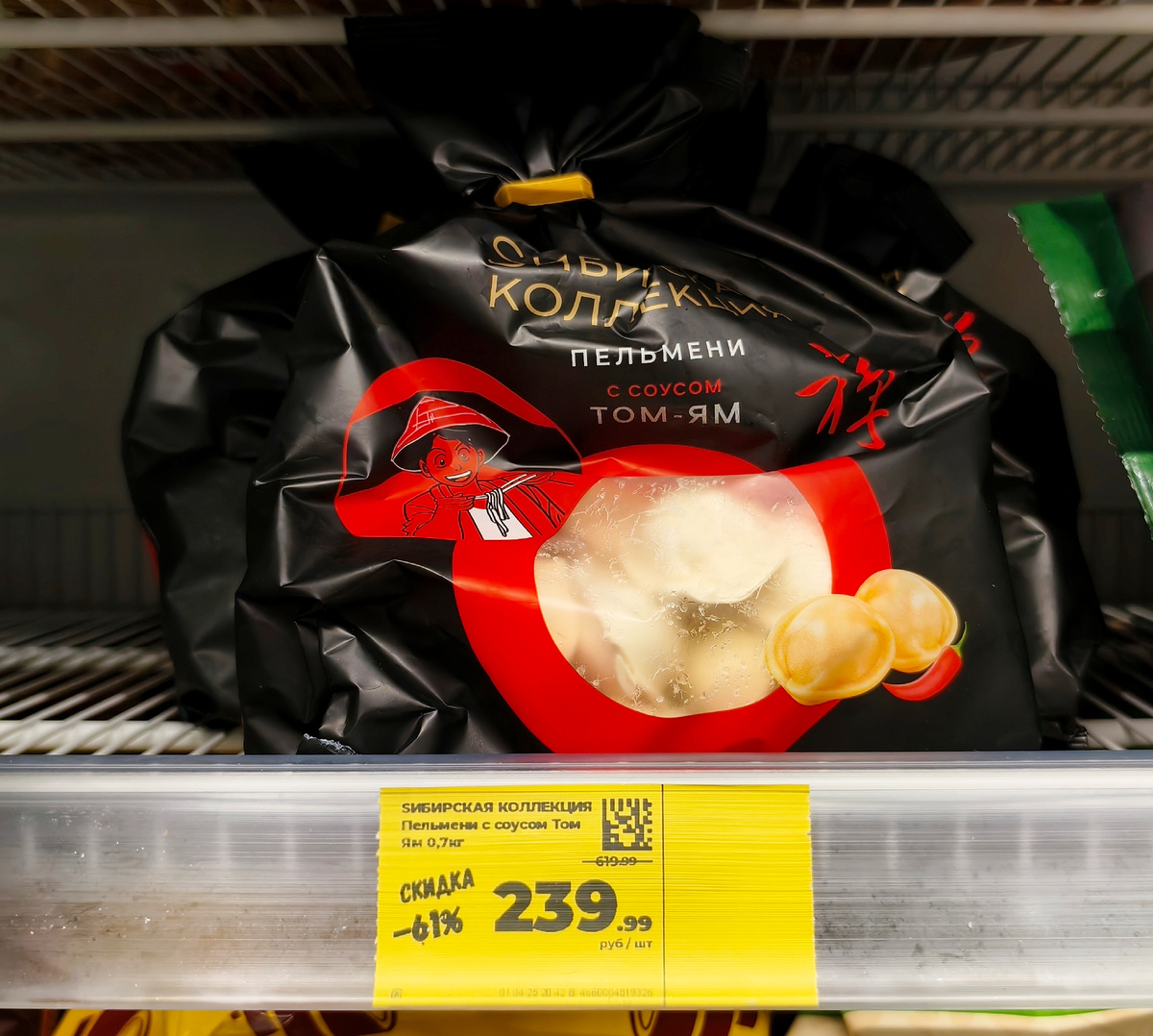 Наткнулся в Магните на такие пельмеши от Сибирской коллекции. Вкус необычный, скидка хорошая, чего бы и не взять на пробу. Без акции вообще 620 рублей за пачку. За такую цену естественно никто не купит, рисуют от балды.