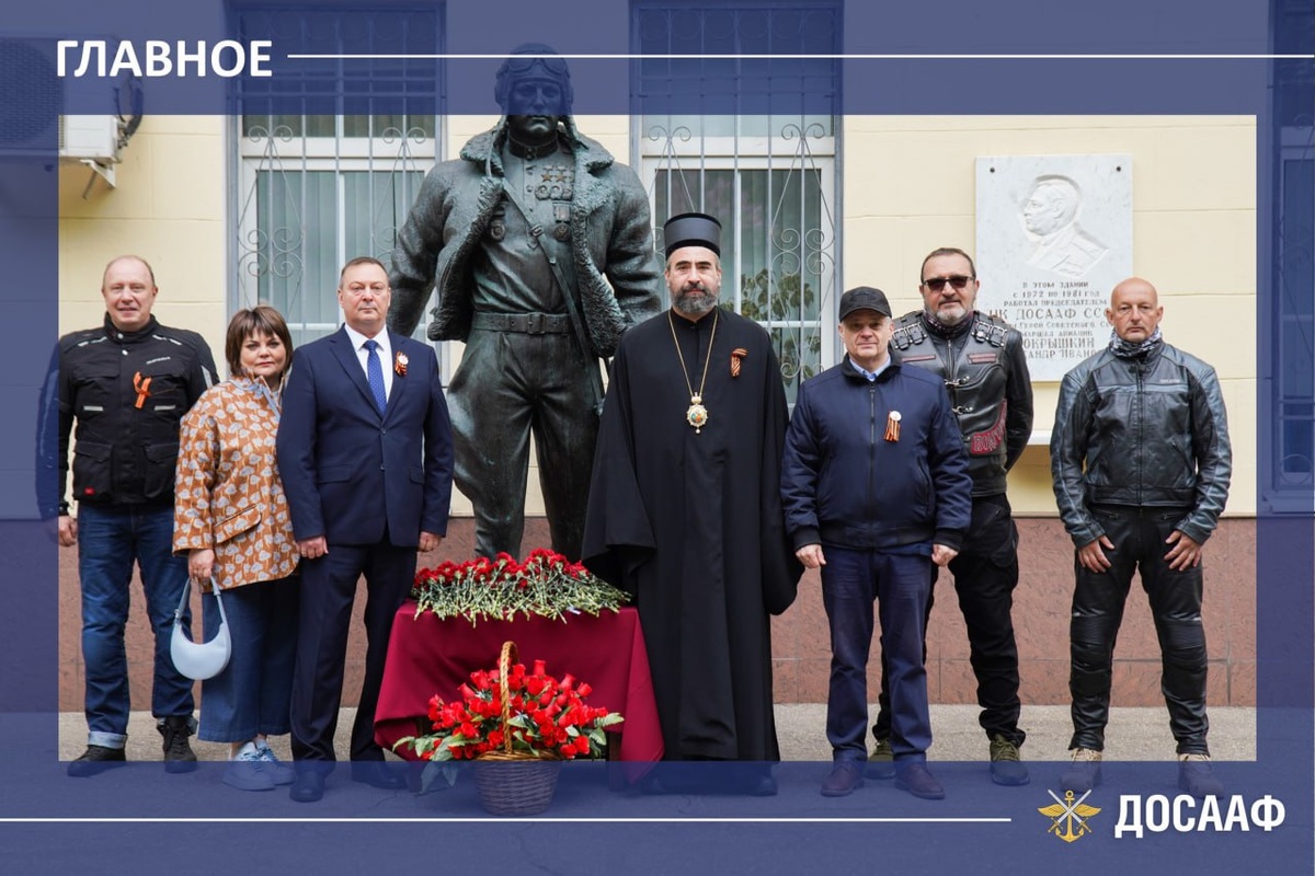 Цветы к памятнику Александру Покрышкину в ДОСААФ России – от братьев-сербов