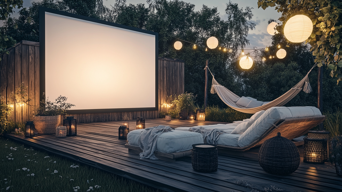 Кинотеатр под звёздами — это особенное удовольствие, которое легко можно устроить прямо на своём загородном участке. Такой вечер запомнится тебе и гостям, а подготовка не потребует больших вложений. Главное — продумать детали и создать ту самую атмосферу, где каждый почувствует себя как в кино. Лучше всего подойдёт тихое, защищённое от ветра место с ровной площадкой. Это может быть газон, веранда, площадка у дома или даже пространство между деревьями. Важно, чтобы было удобно расположить экран и зону для зрителей. Постарайся выбрать участок, куда не попадает свет от фонарей или соседних участков — чем темнее будет вокруг, тем ярче и атмосфернее получится киносеанс. Самый простой вариант — натянуть белую простыню на верёвке или натянуть ткань на рамку из дерева или ПВХ-труб. Можно использовать и готовый переносной экран или купить недорогой надувной. Главное — чтобы поверхность была ровной, матовой и не пропускала свет. Для домашнего формата вполне подойдёт даже светлая стена дома или з