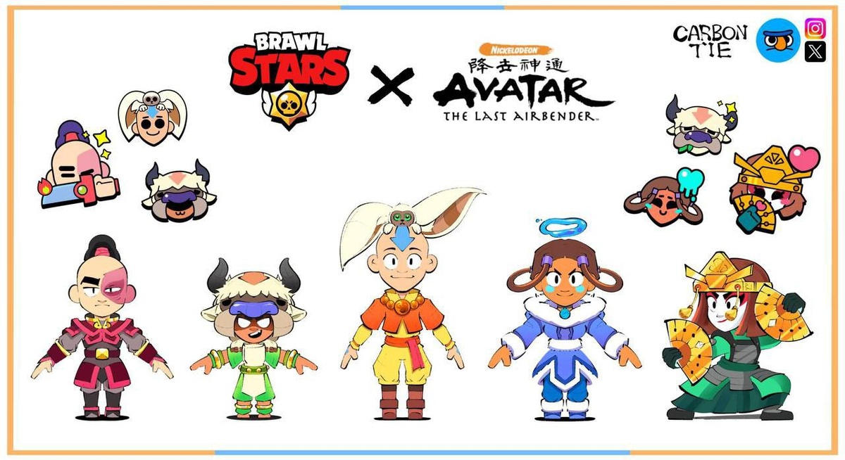 🔊 Многие игроки мечтают о коллабе с «Аватаром», и поэтому фанат нарисовал много скинов для разных бойцов в этом стиле Мир Supercell. Подписаться