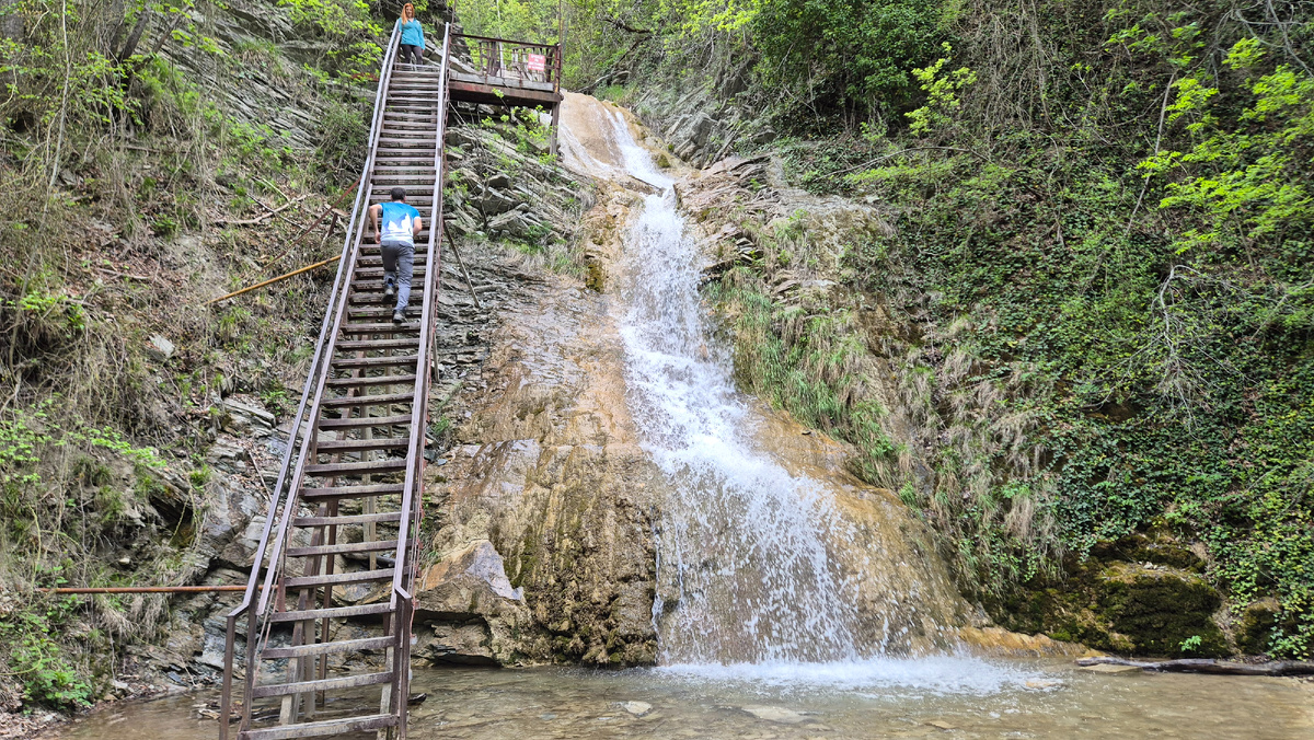 Всем привет! Гебиусские водопады много лет назад произвели на нас большое впечатление. В то время мы активно изучали наше побережье на автомобиле - остановились в Архипо-Осиповке на несколько дней. Оказывается рядом с Краснодаром (относительно, конечно!) есть интереснейшая локация с очень живописной долиной реки Тешебс. На схеме маршрута, который начинается для автолюбителя или посетителя, приехавшего на такси, от автостоянки указано, что маршрут будет 1200 метров. НО! Во-первых, это напрямую, а во-вторых без учета вертикального участка в конце пути. На нашем трекере вышло 3200 метров в обе стороны. Начинаем путь вот здесь - на битком забитой стоянке. Свою машину мы припарковали на обочине... Координаты: 44.371221, 38.625480. Удобная обувь и хорошее настроение - залог приятной прогулки к водопадам. Будьте готовы, что в конце Вас будет ждать четыре очень серьезные лестницы!))) Идем через кассу. Здесь платим 450 рублей. Дети по 350 р. Тропа, которая начинается как качественная грунтовка