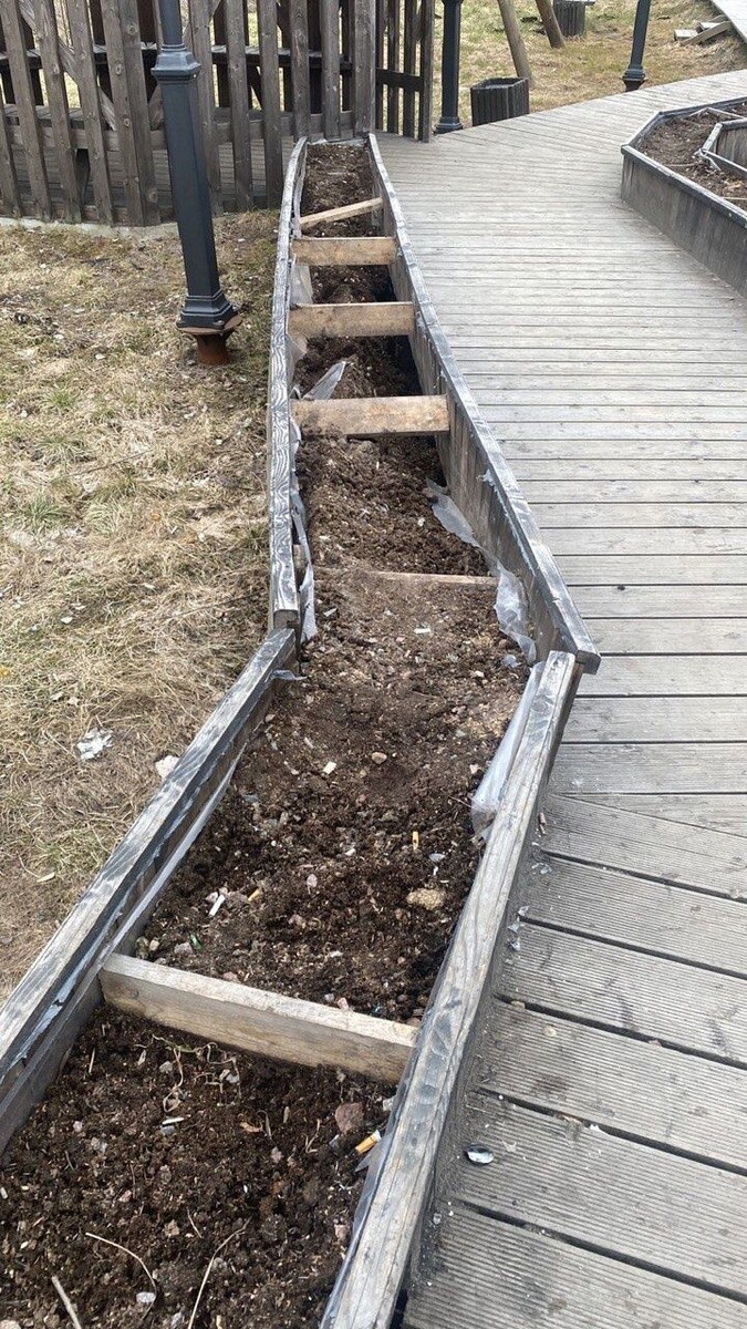 Суоярвский муниципальный округ / VK Неизвестные бегали по клумбам в парке Сувилахти в Суоярви и разломали их. По словам очевидцев, деревянные конструкции не выдержали веса злоумышленников. Судя по следам, по клумбам бегали взрослые люди. Фото опубликовали в паблике Суоярвский муниципальный округ. Как отметили горожане, ремонт, материалы, оплаченный труд работников — все это стоит немалых денег. «На фото видны следы обуви больших размеров, а значит, достаточно взрослые люди скачут по клумбам. Убедительная просьба понять, что это клумба для цветов, а не беговая дорожка!», — написали авторы поста. Ранее писали о том, что мае вандалы разгромили парк «Патриот» в карельской столице.