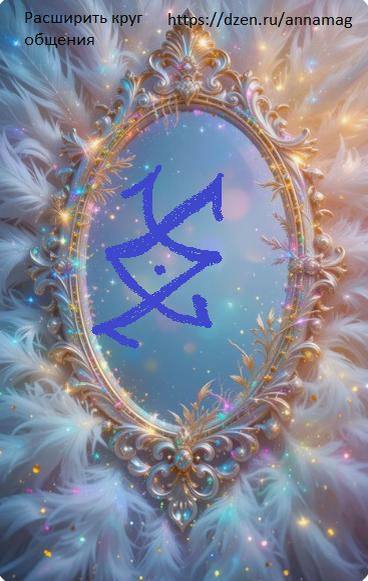 Знак рисуется на любой зеркальной поверхности, лучше - зеркале. Оговаривается для чего он активирован. После результата смывается с поверхности с благодарностью за работу, водой. Знак расширяет круг нужного вам общения ( бизнес, интересы, работа, клиенты, друзья). Один знак для одной сферы круга общения.