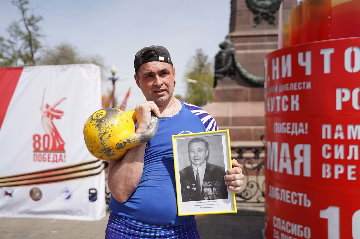 Акция «Рекорд Победы» прошла на площади у памятника Александру III в Иркутске. Мероприятие объединило более 100 человек. Перед участниками стояла задача – поднять гири 29220 раз, именно столько дней прошло со Дня Победы 1945 года до 9 Мая 2025 года. И рекорд в честь 80-летия Великой Победы был установлен! В акции могли принять участие все желающие. Испытать свои силы решили спортсмены, ветераны боевых действий, дети, школьники, студенты, пенсионеры… Все они пришли на площадь у памятника Александру III не просто установить рекорд, но и отдать дань памяти героям, сражавшимся в годы Великой Отечественной войны. – Наша страна празднует самый великий праздник – это День Победы. Мы все помним и будем помнить всегда подвиг советского народа – подвиг на фронтах, подвиг в тылу, подвиг всех, кто ковал Победу! С Днем Победы! – сказал на открытии акции Павел Богатырев, министр спорта Приангарья. После к собравшимся обратились заместитель председателя Регионального отделения ДОСААФ России по Иркутс