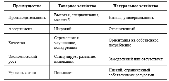 Товарное хозяйство имеет ряд существенных преимуществ по сравнению с натуральным: