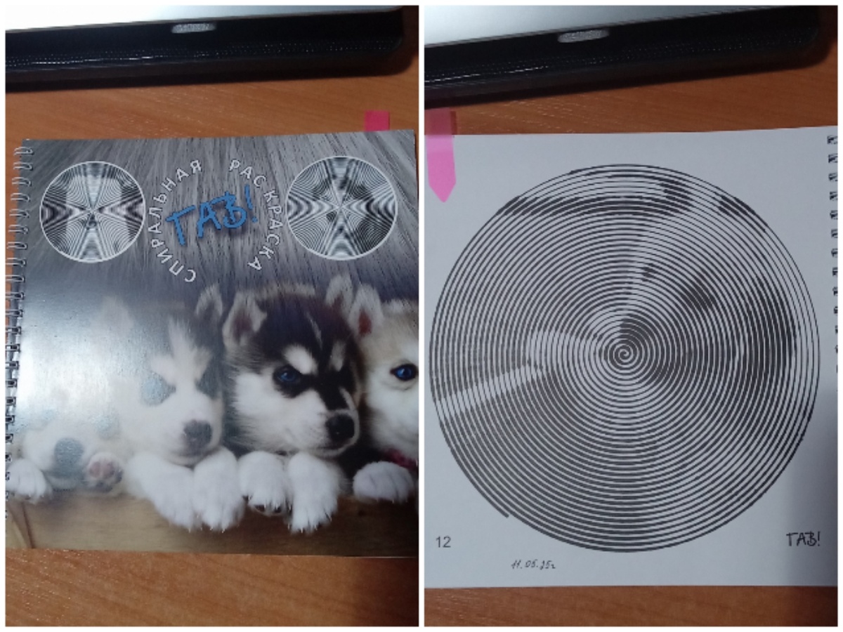 Раскрасились две картинки по заданию рандомайзера. Это спиралька из раскраски "Гав" и по кружочками из раскраски "Мадагаскар".