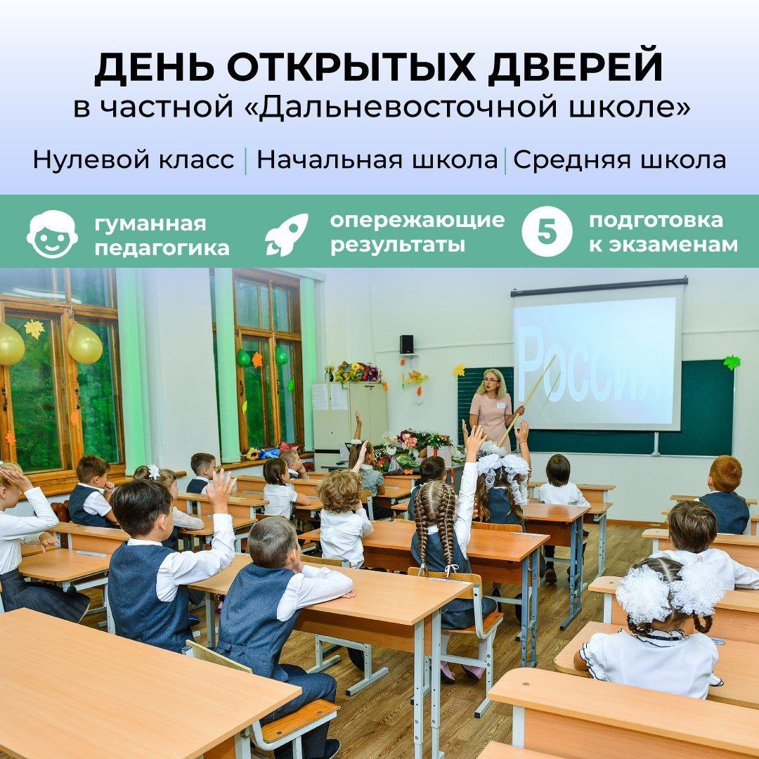 Друзья, финальный открытый урок в "Дальневосточной школе" состоится 17 мая в 10:00. Открытый урок проводится с вашими детьми, на мероприятии у вас будет возможность оценить методику В.И. Жохова, познакомиться с директором и будущим классным руководителем. Наши преимущества: 🤩 у нас есть лицензия. Вам не нужно будет оформлять семейное обучение и отправлять ребенка на аттестацию к незнакомым учителям; 🤩 благодаря методике В.И. Жохова в первом классе дети уже знают таблицу умножения и счет в пределах тысячи. В обычных школах это проходят во втором классе; 🤩 мы предлагаем гибкие варианты продленки и дополнительные образовательные возможности; 🤩 в школе есть психолого-педагогическая служба, которая сопровождает детей, родителей и педагогов в ходе обучения; 🤩 школа обеспечивает безопасность: территория огорожена, есть тревожные кнопки и пост охраны. При поступлении мы запрашиваем у родителей список лиц, которые могут забирать ребенка из школы. 🤩 Телефон для записи на открытый урок:
