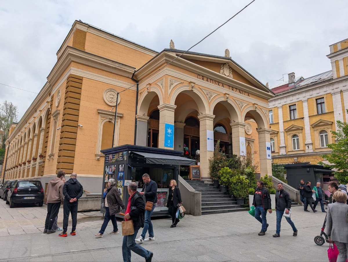 Если не знать, что значит слово «тржница», которое большими буквами написано на фасаде, то никогда не подумаешь, что скрывается за стенами этого здания.