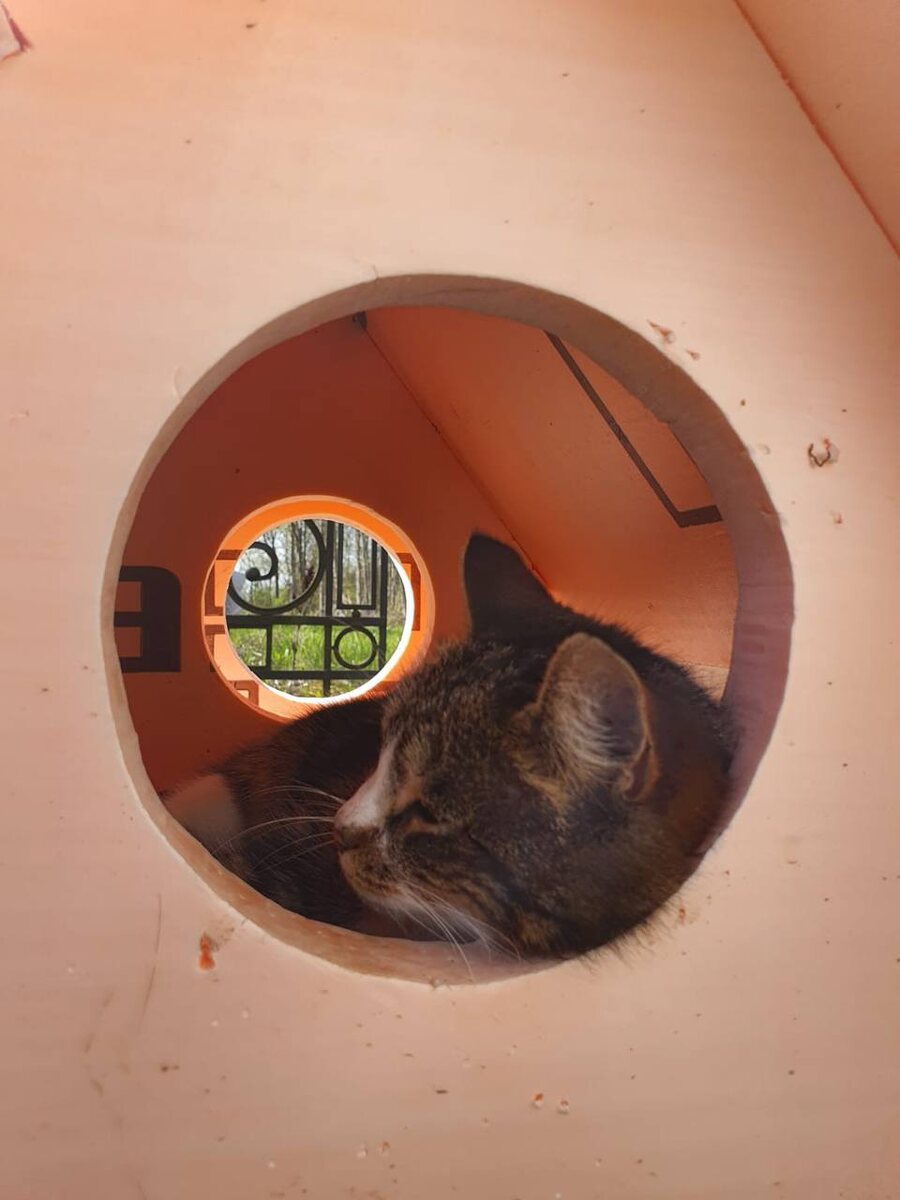 Живет в частном доме, у нее даже есть свой домик👍😻