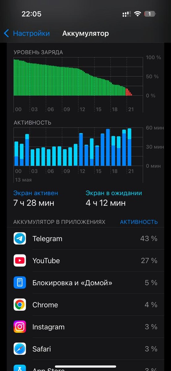 По условиям все стандартно для меня: LTE на двух симках, вайфай/сотовая сеть 50/50 по времени. Яркость 50%. Как обычно соцсети, браузер, ютуб, навигация.