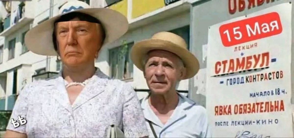 Трамп ждет переговоров Украины и России в Стамбуле и пошлет туда своих представителей. Об этом он сказал во время визита в Саудовскую Аравию. «Надеюсь, что в четверг будут переговоры. Наши люди тоже туда поедут», – сказал президент США. Лично мне эта ситуация что-то напоминает… Помните прекрасную управдомиху из знаменитой комедии Гайдая? Дональд наш Трамп, конечно, не столь прекрасен, как Нонна Мордюкова, но… Запомните все - Наш Президент в булоШные Стамбула НЕ ЕЗДИТ!!!! Ни на такси, ни на президентском кортеже Ну и еще об одном персонаже этой самой стамбульской тусовки - тоже ведь кого-то ждет: - эта статья опубликована на сайте паблико.ру вот здесь