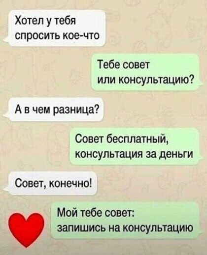 💡 "Я начал брать деньги за советы. Вот почему..." Раньше я раздавал идеи направо и налево — в курилке, на тусовках, даже в лифте соседям 😂. Пока не понял: бесплатный совет — это как бесплатный сыр... ты знаешь, где он обычно бывает. Теперь у меня есть железное правило: последнее место, где я консультирую бесплатно — это бизнес-бранч. К слову, он в воскресенье в 11:00 🍳 Почему? Потому что за круассаном и капучино я хотя бы получаю вкусный завтрак вместо "спасибо, хорошая идея, нужно подумать" Потому что 80% "срочных вопросов" решаются гуглом за 5 минут (но за кофе я всё равно отвечу). Потому что если человек не готов купить даже эспрессо — его "перспективный проект" обычно заканчивается на фразе "давай как-нибудь потом" 🔹 Но если серьёзно: Каждый совет в моей голове — это: 😱 15 лет провалов в маркетинге "Опыт позволяет нам распознать ошибку, когда мы ее уже повторили." 🕙 5000+ часов переговорных "Жизненный опыт — это когда знаешь, что нельзя, но не знаешь, как же тогда мо