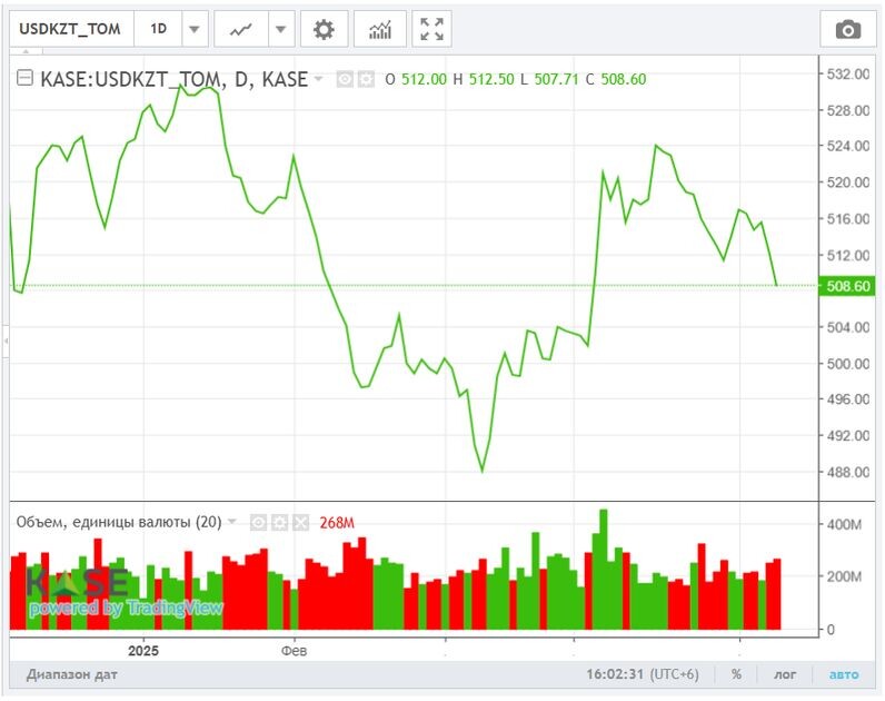 Обзор рынков подготовили аналитики Ассоциации финансистов Казахстана (АФК). Валютный рынок По итогам торгов во вторник курс по паре USD/KZT закрылся на уровне 509,84 тенге за доллар, укрепившись на 3,55 тенге. Общий объем торгов составил 267,9 млн долларов (+15,3 млн). Укрепление национальной валюты второй день подряд происходило на фоне некоторой стабилизации внешней среды, восстановления котировок нефти, роста аппетита к риску и удовлетворения спроса на иностранную валюту со стороны отдельных участников рынка. Среди внутренних факторов следует отметить стабильное предложение инвалюты на локальном рынке со стороны Национального банка РК, субъектов КГС и экспортеров при незначительных изменениях на стороне спроса. Завтра в фокусе внимания - публикация предварительных данных о международных резервах, а также информации о валютных операциях и интервенциях Нацбанка. Диаграмма 1. Курс по паре USD/KZT: Денежный рынок Индикативные ставки денежного рынка продемонстрировали смешанную динамику