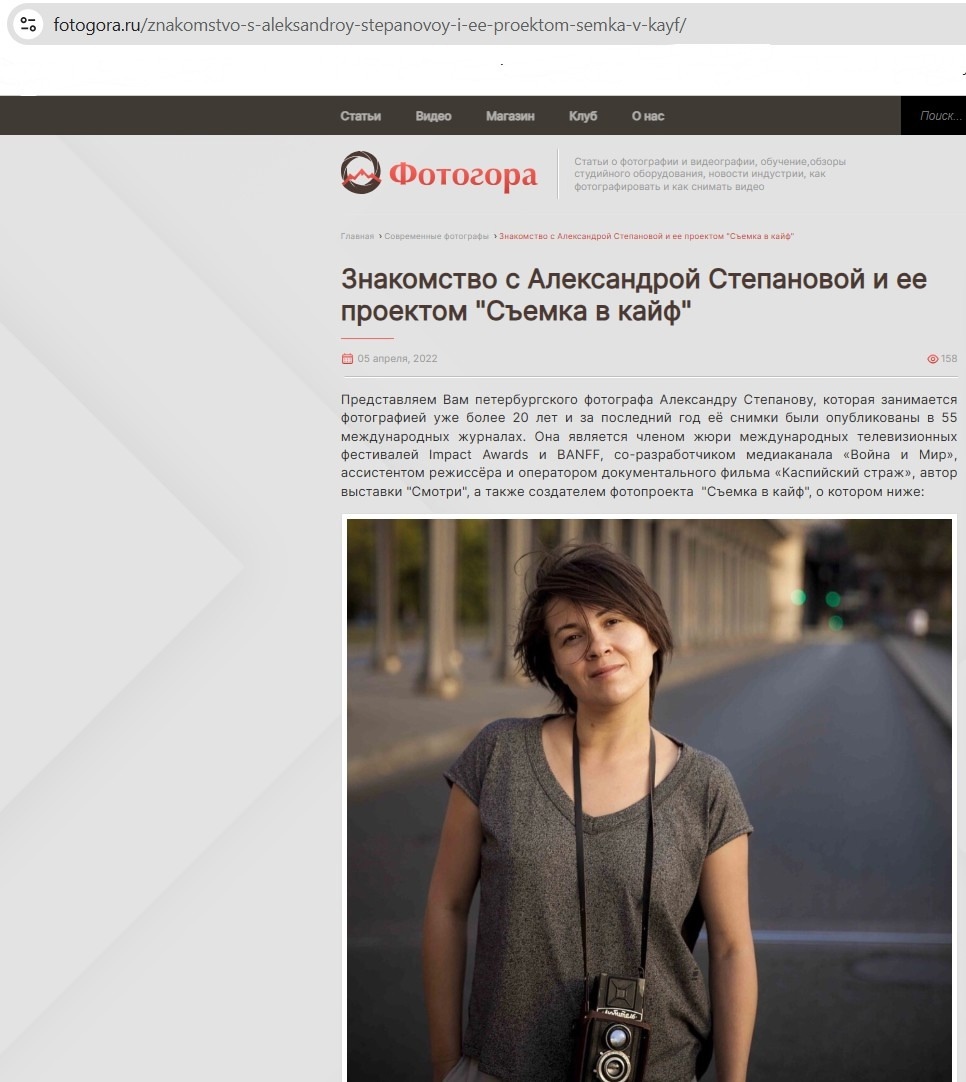 Сегодня представляю мою статью о «Съемке в кайф» и ее сути, на портале «Фотогора», она написана некоторое время назад, но ничуть не потеряла своей актуальности. Полетели! "Знакомство с Александрой Степановой и ее проектом "Съемка в кайф". Представляем Вам петербургского фотографа Александру Степанову, которая занимается фотограф