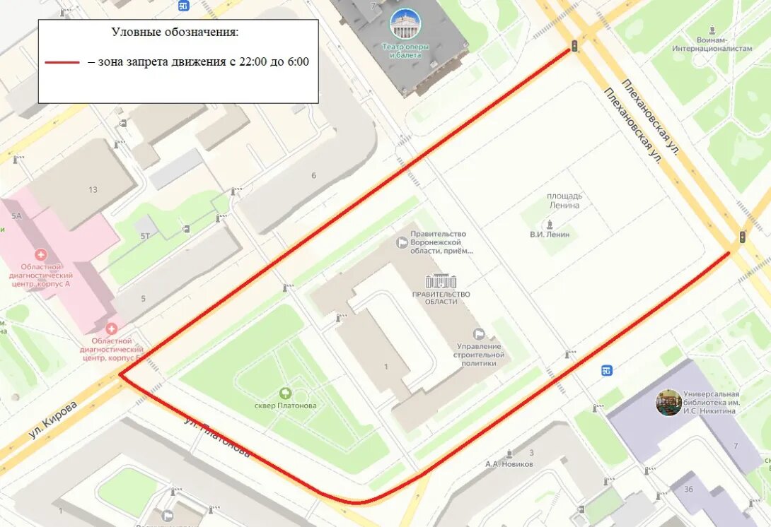 В Воронеже движение у площади Ленина будут закрывать в течение двух недель
