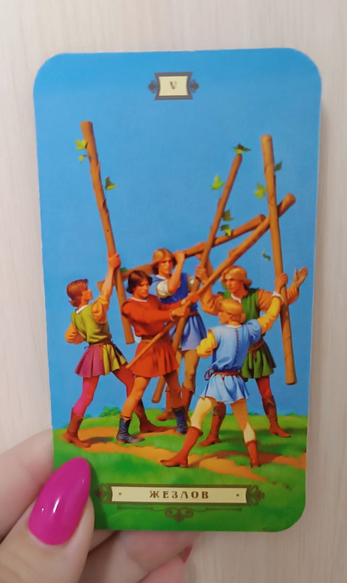 🃏 Карта дня среда 14.05.2025 5 Жезлов Сегодня Ваш день может быть полон суеты - везде успеть, кучу дел переделать, встретиться, договориться, состыковать, внести коррективы, перенести, опять договориться, держать контроль. Ааа, суета, но зато мы в тонусе. Здоровая конкуренция, вызов и напряжение – вот, о чем нам ещё говорит 5 Жезлов. Она предлагает испытать свою силу, волю, навыки, таланты, знания в соревновании с другими. Это может быть экзамен или защита диплома, участие в каком-то соревновании, конкурсе. Сегодня Вам необходимо проявить мужество и продемонстрировать окружающим все, на что мы способны.