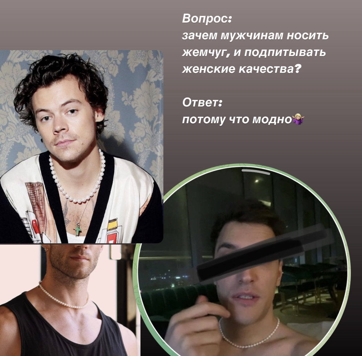 С 2023 году в моду вошел спорный (для меня) тренд на мужские украшения с жемчугом.