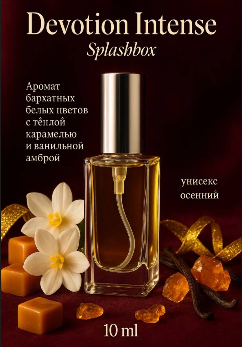 Всем привет! ❤️❤️❤️ Среди новинок появился ❤️ Devotion Intense - аромат бархатных белых цветов с теплой карамелью и ванильной амброй ❤️ Арт. 414994381 Пирамида: Верхняя нота: Лесной орех Средняя нота: Цветок апельсина Базовая нота: Ваниль. На старте раскрывается изысканным аккордом карамели, плавно переходящим в насыщенные цветочные ноты, обрамленные таинственной амброй и лёгкой сливочной сладостью. На коже долго ощущаются ноты ванили и тёплого мускуса. Также, хочу напомнить и про ❤️Devotion - это теплый восточный ванильный сладкий аромат для женщин ❤️ Арт. 232573488 Пирамида: Верхняя нота: Засахаренный лимон Средние ноты: Панна-котта, Цветок апельсина и Базовая нота: Ваниль. Девоушены похожи в звучании с ❤️ Bake Арт. 311063728 ❤️ Lira Арт. 160492819 ❤️ Red Africa Арт. 144165907 Эти ароматы прекрасно раскрываются в прохладную погоду ❤️ Пользуемся моментом! ❤️ Какой аромат выбрали сегодня? ❤️ Наш чат: @splashbox_chat 🔥