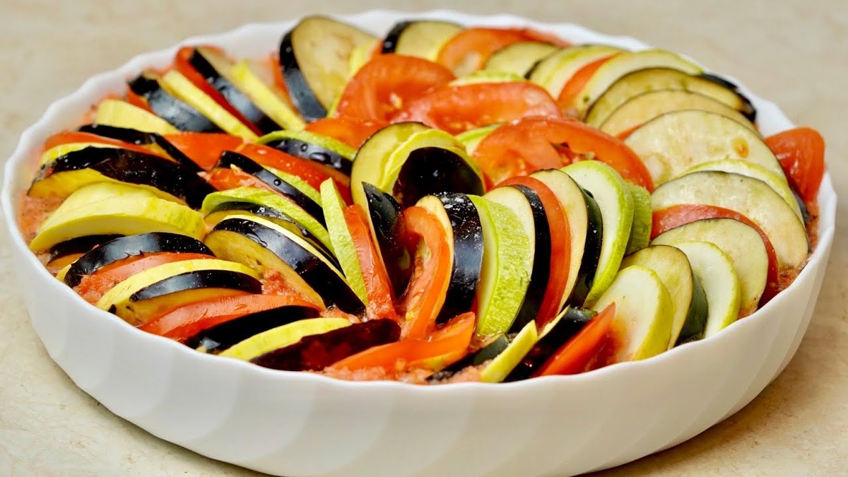 Для соуса: Для слоёв: Для подачи: 1. Приготовление соуса: 2. Сборка рататуя: 3. Запекание: Подавайте горячим или тёплым, украсив базиликом. Идеально с: Готовьте с любовью и наслаждайтесь! 🍆🍅