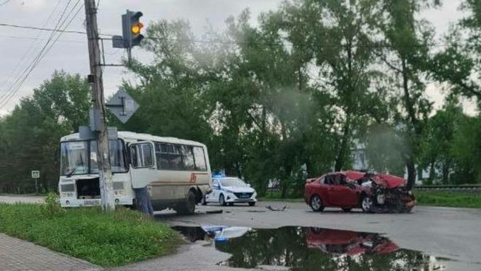 В Бийске шесть человек пострадали при столкновении автобуса и легковушки