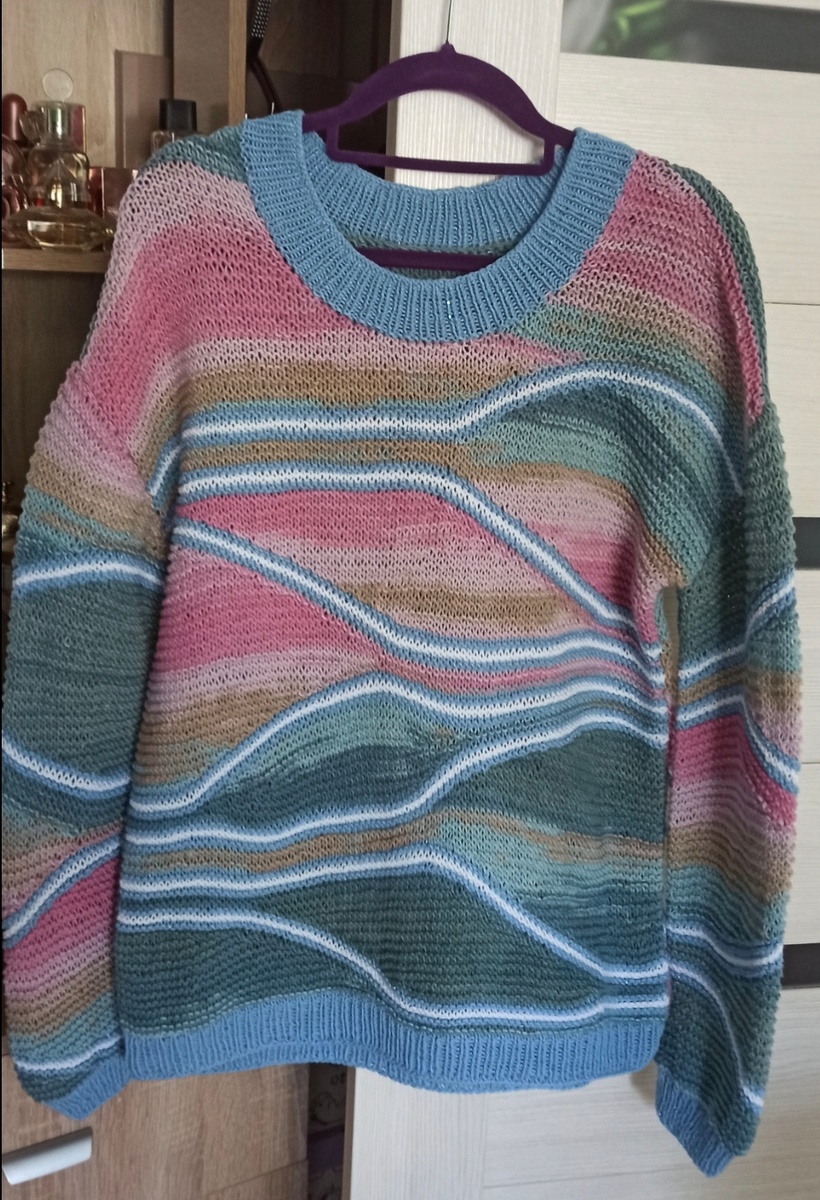 Пряжа Ализе Котон голд - аналогична той, из которой я вязала свою Дюну. Всё-таки секционно-окрашенная пряжа лучшее решение для метода свинг ✌️ Добрый день. Вдохновившись Элладой тоже связала себе топ. Рисунок, по-моему, немного видоизменила, но принцип тот же. Пряжа Софтнесс Семеновская - вискоза и хлопок. Нитка скользкая и непослушная, ложится неровно, но после стирки все выровнялось. Я быстро нашла изменения в рисунке, которое сделала Наталья - вместо мережки со спущенными петлями связана дорожка платочной вязки. А что, это классное решение, особенно для пряжи, имеющей тенденцию к вытягиванию. Мотайте на ус, поскольку узор Эллады стоит того, чтобы хоть раз его связать. ✨ Самый популярный дизайн джемпера с круглой кокеткой, но не часто его вяжут не в синих тонах 😉 как у Иры Здравствуйте. Моя Санторини по Вашему МК. Пряжа моточная тенсель 71% лен 29% из Тухендс в 2нити 175м на 50 гр спицы 3,75 резинки 2,75. Тенсель с очень мелкой пайеткой, красиво мерцает, после ВТО совсем не изм