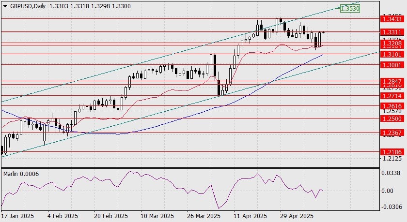 https://basechop.ru/wordpress/?p=42539 GBP/USD На фоне вчерашнего усиленного развития рисковых и вместе с этим оптимистичных настроений (S&P500 0,72%, WTI 2,78%, индекс доллара -0,76%), фунт стерлингов не стал отрабатывать целевую поддержку 1.3101, а устремился вверх и отработал целевое сопротивление 1.3311. Сегодня утром цена продолжает подпирать достигнутое сопротивление при поддержке вышедшего на положительную территорию осциллятора Марлин. Уверенный выход цены над уровень позволит развить рост к цели 1.3433. далее вероятно продолжение роста к верхней границе ценового канала в район отметки 1.3530. На графике четырёхчасового масштаба цена закрепилась над индикаторной линией Крузенштерна, что создаёт хорошую вероятность и закрепления цены над уровнем сопротивления 1.3311. После такого закрепления путь к цели 1.3433 станет открытым. Это основной сценарий. Осциллятор Марлин закрепился на территории растущей тенденции. Альтернативный сценарий может развиться после ухода цены под урове