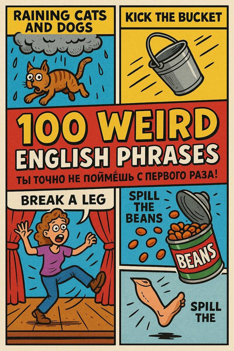 - Пример: We cancelled the picnic — it’s raining cats and dogs!