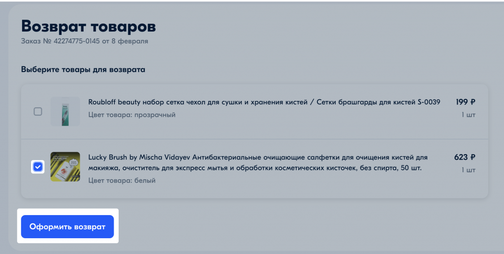 - Укажите причину возврата (не подходит размер, дефект товара, ошибка при заказе и т.д.).