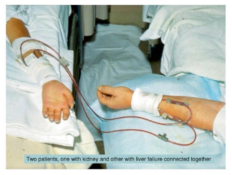 Пациент с почечной недостаточностью спасает пациента с печеночной. И наоборот. Этот эксперимент был проведен в 1970-х годах в Университете Миннесоты командой под руководством доктора Джона Хансена. Он демонстрировал возможность временного замещения функций печени и почек между двумя пациентами, создав между ними единый кровяной контур. Подобные эксперименты проводились в эпоху, когда диализ был редкостью. Выкручивались как могли — буквально на грани инженерного отчаяния и медицинского героизма. Это всего 50 лет назад. Хочу сегодня немного рассказать вам про историю гемодиализа.