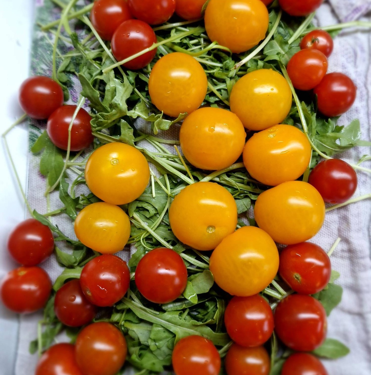Обожаю лето и раннюю осень за обилие свежих овощей и зелени! А также за возможность проводить больше времени на свежем воздухе и готовить на открытом огне. Именно в это время года кулинарные эксперименты становятся особенно вдохновляющими. Летние салаты - это отдельная песня! Легкие и освежающие, они становятся идеальным дополнением к любому блюду! Сегодня поделюсь простым рецептом салата, который подойдет как к шашлыку, так и к хашламе или плову в казане. Думаю, многие готовят салат из помидоров и зелени и не видят в нем ничего особенного, но в этом есть 2 маленьких секрета, о которых я расскажу вам по ходу приготовления. Готовить такой салат нужно непосредственно перед подачей, когда горячее уже вот-вот поднесут к столу. Итак, возьмем 1 кг разносортных помидоров и 200-300 гр. зелени на ваш вкус А вот и секрет №1: помидоры для данного салата нужно брать разных сортов. Например, бычье сердце, черри, сливка и т.д.. Из зелени обязательно наличие одного из вида листьев: салата, рукколы и