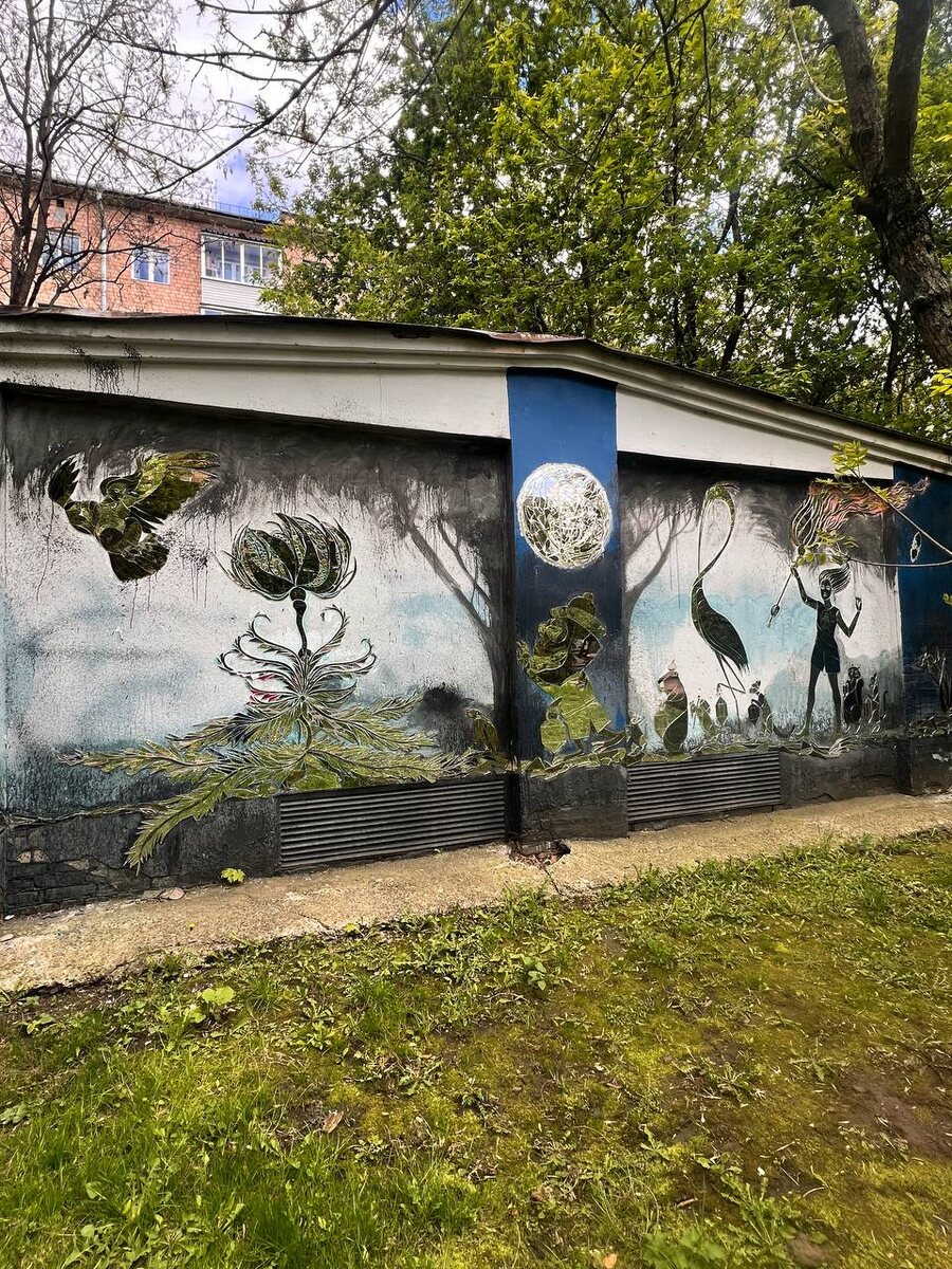 В поисках человека Совершенно чудесная зеркальная мозаика «Диогеновское шествие» на типовой трансформаторной будке Выполнена творческим дуэтом супругов Ивана и Дарьи Никитиных, художников-монументалистов, специалистов по витражам, авторов проекта «Небесные рыбы» Мастера зеркальной мозаики хотят наполнить городское пространство высокохудожественным стрит-артом, сделав через это и мир и людей чуточку лучше Вы любите стрит-арт? Я обожаю. Даже граффити на бетонных заборах вдоль дорог мне, в основном, нравятся. А когда уличное искусство выглядит так, как работы Никитиных, я нахожусь в полном восторге! Полюбоваться зеркальной мозаикой можно во дворе жилого дома по адресу: 📍улица Усиевича, дом 15/2. Калитка во двор открыта с 9.00 до 21.00. Пройдите в глубь двора до трансформаторной будки Что касается Диогена, то по легенде, древнегреческий философ средь бела дня зажёг фонарь и стал ходить по людным улицам Афин. На вопросы прохожих, чего же он ищет днём с огнём, Диоген отвечал: «Ищу чел