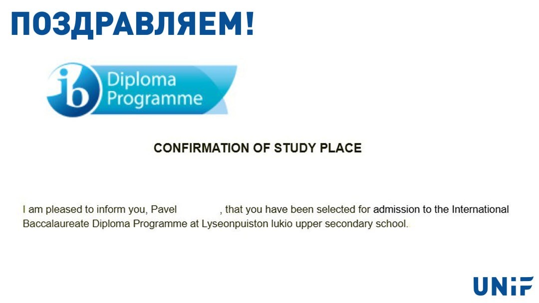 🎉Поздравляем! ✍️Павел М. (Черногория) поступил в IB лицей в городе Рованиеми (Lyseonpuiston Lukio) по результатам дистанционного экзамена. 🧑💻Экзамен включал задания по математике и английскому языку. 🇫🇮Доверьте и Вы свое поступление профессионалам UNiF! 👉https://www.unif.pro/company/uslugi/vibor-programm #финляндия #поступлениевфинляндию