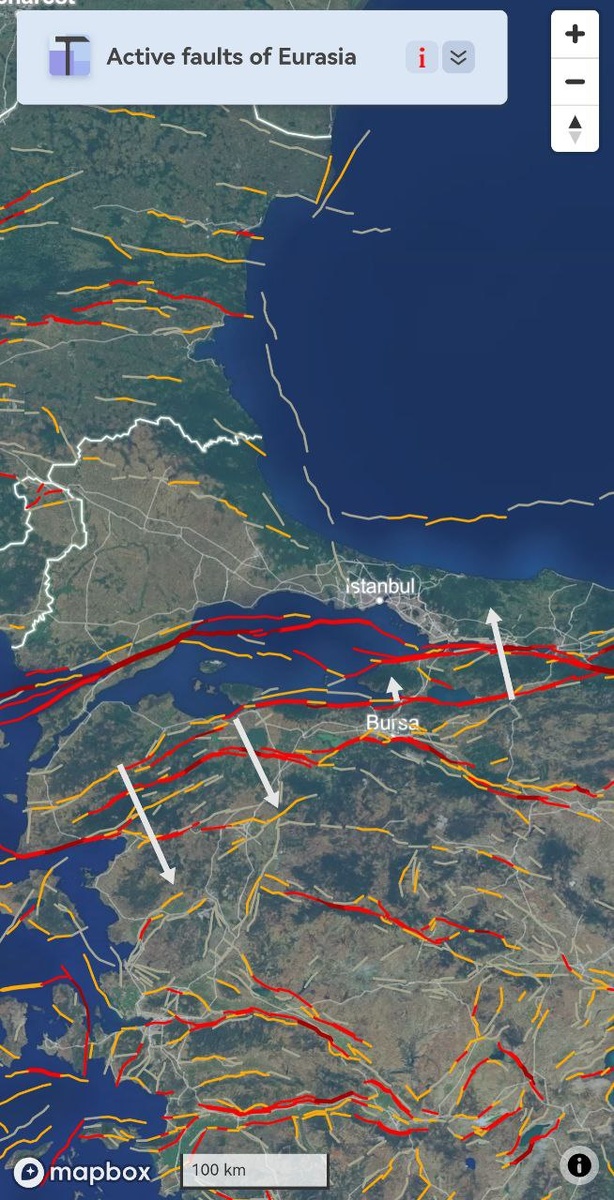 Данная зона на северо-западе Турции вновь рисует ОСТИ на М5+, а также волнистую рябь над Мраморным морем.