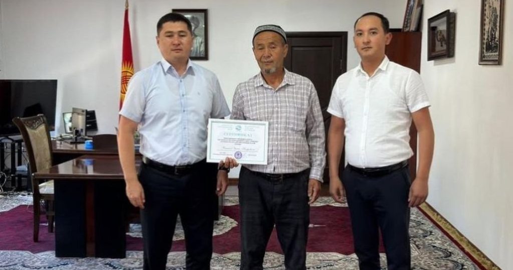 💼 Компенсацияны Кыргызгосстрах тарабынан Баткен филиалынын директору Абдуталип Султанов жана Кадамжай районунун акими Болотхан Баяке уулу катышуусунда төлөп беришти.