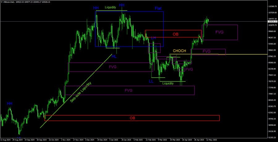 https://basechop.ru/wordpress/?p=42555 Биткоин продолжает сильнейший рост и даже не пытается корректироваться. За последний месяц первая криптовалюта поднялась на 31 000$, полностью нивелировав падение «на Трампе». В последние два дня «цифровое золото» немного снизилось в цене, однако это снижение даже «откатом» назвать крайне сложно. Таким образом, в данное время говорить о коррекции еще слишком рано. На обоих таймфреймах в данное время у нас есть только «бычьи» паттерны FVG. Мы видим, что на 4-часовом ТФ биткоин скорректировался к ближайшему паттерну FVG и возобновил от него рост. Таким образом, «цифровое золото» может продолжить расти даже толком без коррекции. Однако на 4-часовом ТФ остается еще два незаполненных FVG, а на дневном ТФ – FVG очень большой – цена может опуститься в его рамках гораздо ниже перед новым ростом. Как мы уже говорили, коррекций в последний месяц не видел никто. Мы считаем, что основания для покупок от ближайшего FVG на 4-часовом ТФ имелись. Однако следует