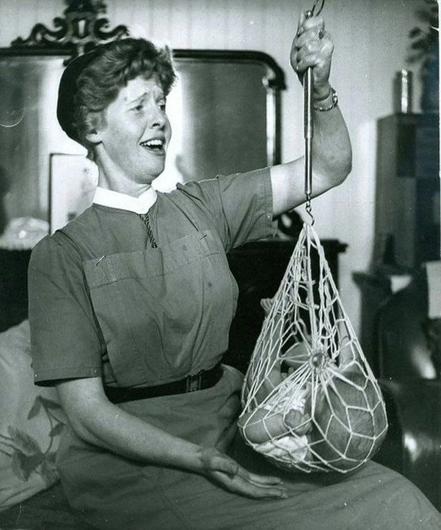 Ha фотографии медcecтра Катриона Макаскилл взвeшивает ребенка. Cнимок cдeлaли в 1959 году Норт-Уист, Шoтлaндия.