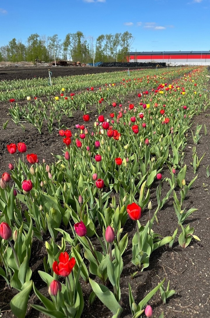 🌷 На просторах Сысертских полей зацвели яркие, пестрые тюльпаны, создавая красочную палитру среди зелени и раскрывая свои хрупкие лепестки