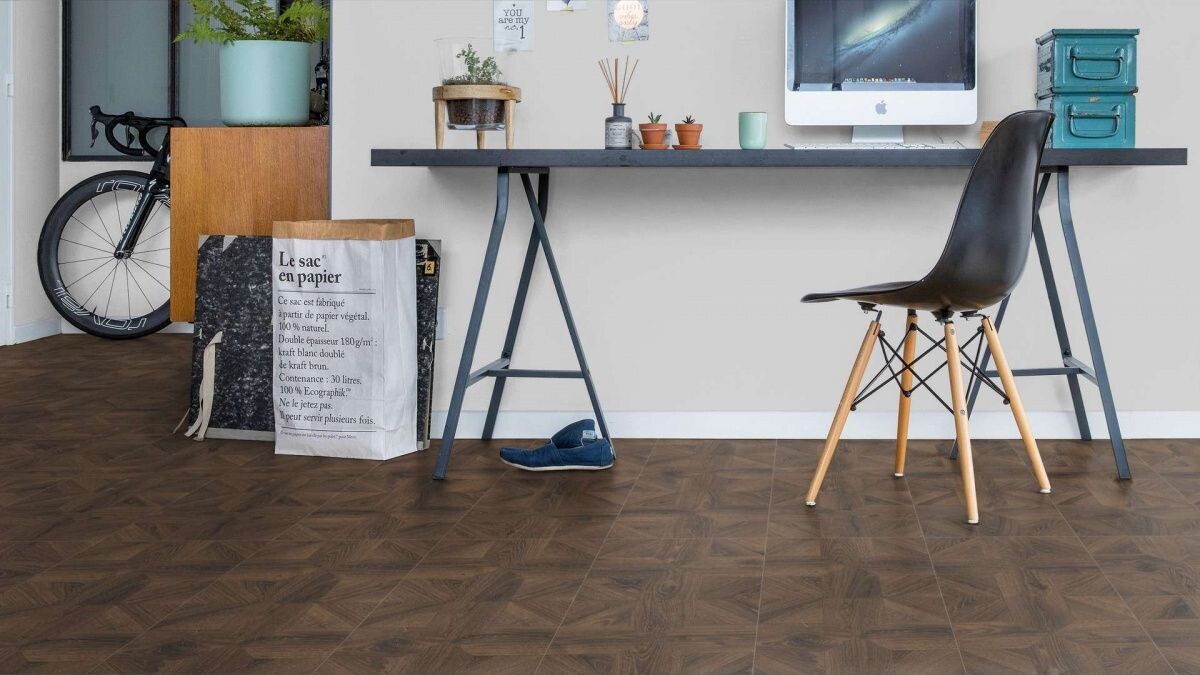 Спрашивает Маргарита из Пушкино: Если стены, шторы, мебель - самые простые, как можно сделать интерьер небольшой молодежной квартиры красивым и стильным при помощи ламината? Понимаю, что хочу слишком многого, но чтобы еще не заоблачно дорого и достаточно долговечно. Отвечаем В квартиру, где живут молодые люди, на самом деле проще подобрать ламинат, чем для консервативных пожилых людей. Молодежь охотно воспринимает дизайнерские новинки, и результат иногда получается просто великолепный. В таком случае необязательно выбирать классические "доски", намного интереснее будет выглядеть нестандарт. Например, имитация наборного паркета в исполнении завода Quick Step, коллекция Impressive Patterns Ultra с 10 декорами разных цветов. Это достаточно недорогой ламинат для своих качеств: 33 класс, толщина 12 мм, ламинированная фаска, влагостойкость 72 часа. Широкие планки 1200 х 396 способствуют быстрой укладке. Кроме того, синхронное тиснение, антистатичность, антискользящие свойства, сопротивление