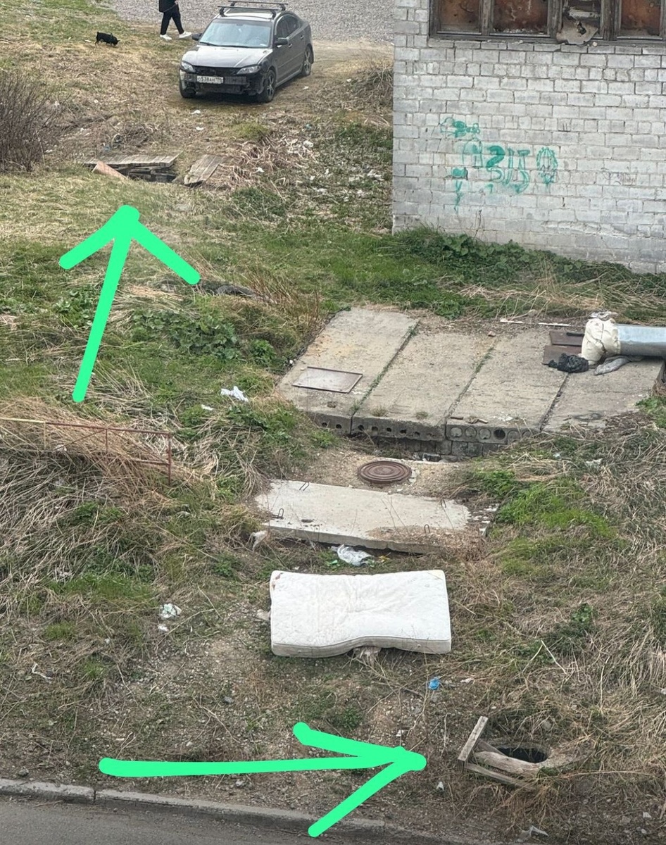#black_serov От подписчика: Анонимно. ул.Рабочей Молодежи 7 и Заславского 15/6 ужасную картину наблюдаем каждый день из окна, открытый колодец и смотровая яма на месте бывшего гаража в который без конца лазиют дети, матрас который притащили с мусорки, УК "Сила Действия" приведите в порядок свою территорию.