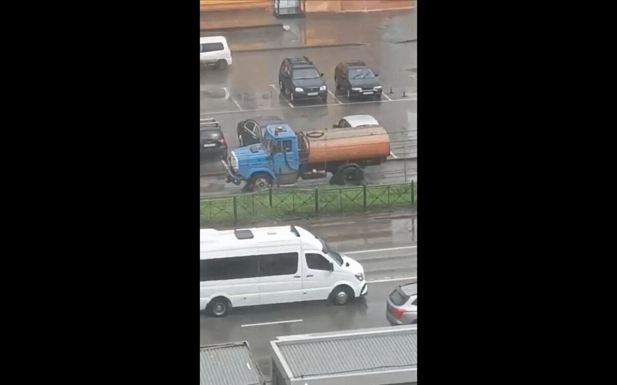 Вчера, 13 мая, в сообществе «Регион 55» социальной сети «ВКонтакте» появилось видео с улицы Кирова, снятое у ТЦ «Хороший». На нем видно, как во время дождя рабочий в поливочной машине направляет струю воды из шланга на газон.