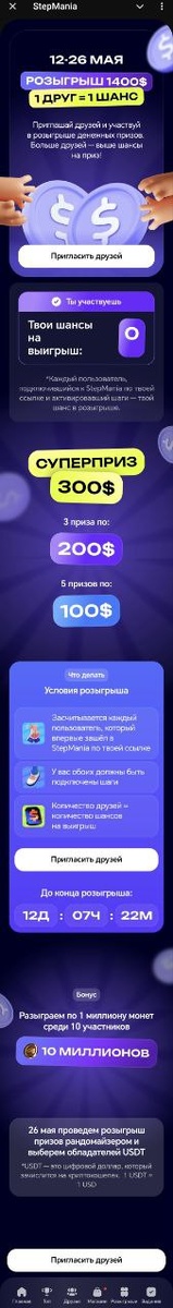 https://t.me/step_mania_bot/app?startapp=UkM9MDAwMDAwTUxzd0ImUlM9bGFuZGluZ19pbnZpdGUmdXRtX3NvdXJjZT1ldmVudCZ1dG1fbWVkaXVtPWNwYyZ1dG1fY2FtcGFpZ249ZnJpZW5kc2dpdg%3D%3D 🚶♂️ Шагай и выигрывай $$$ в StepMania! Подключай шаги и присоединяйся к розыгрышу.